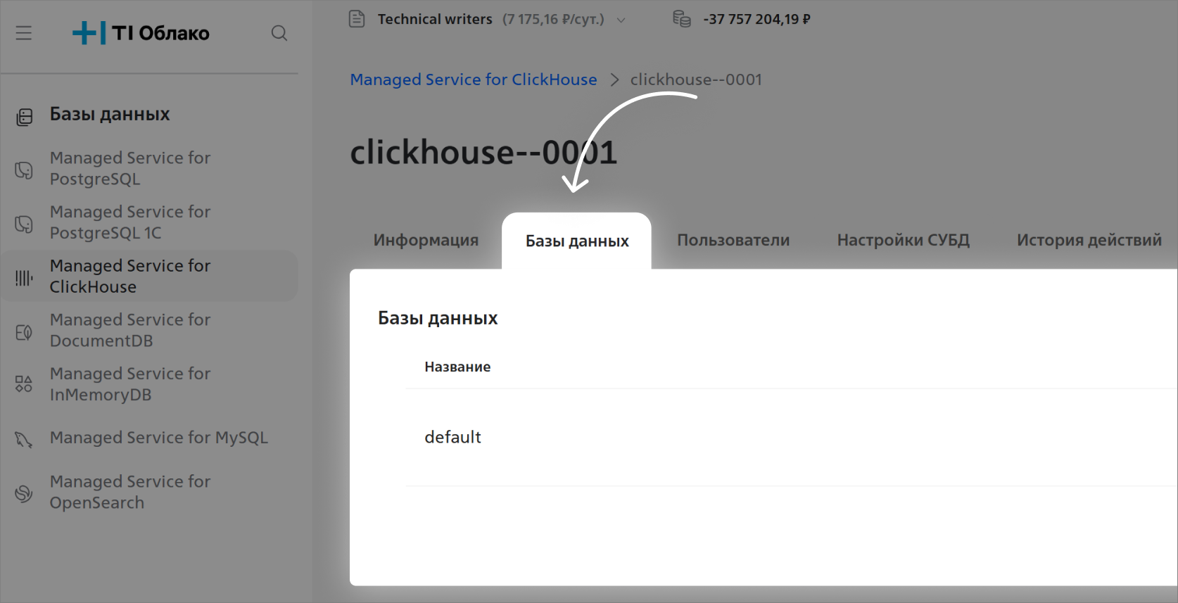 Подробнее см. в разделе Базы данных кластера ClickHouse.