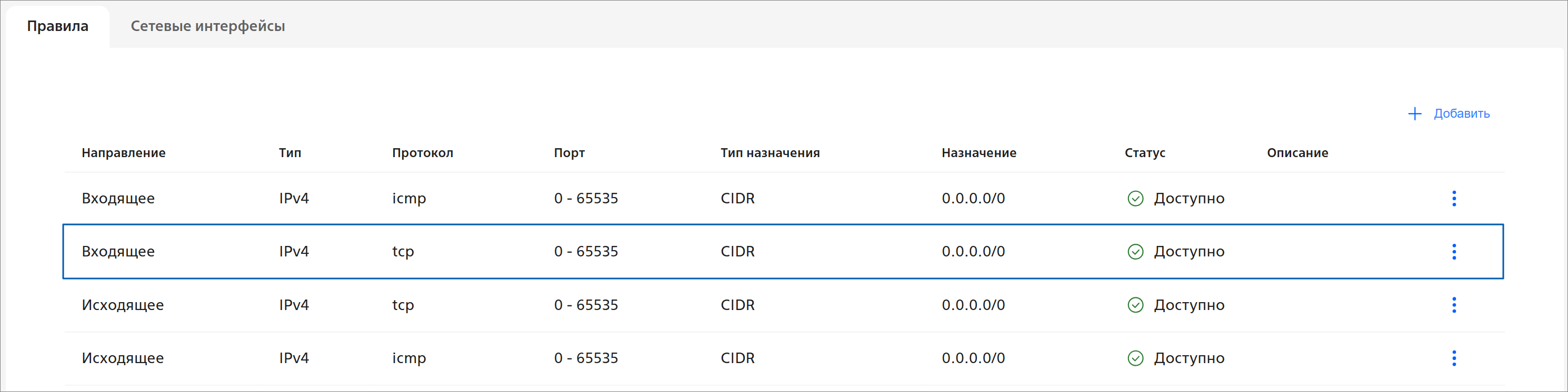 - в группе безопасности кластера есть правило, разрешающее входящий трафик по протоколу TCP для порта: