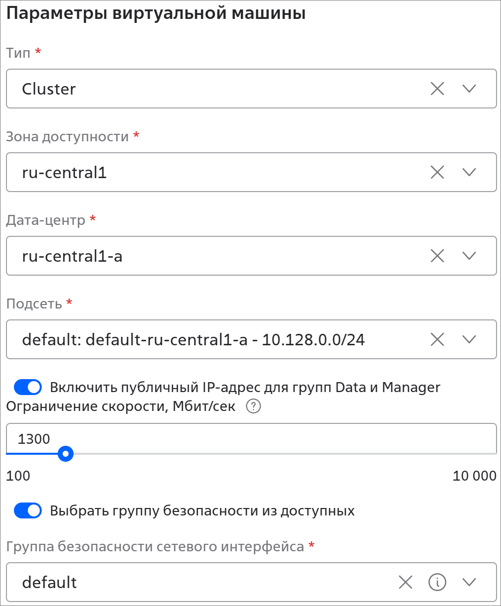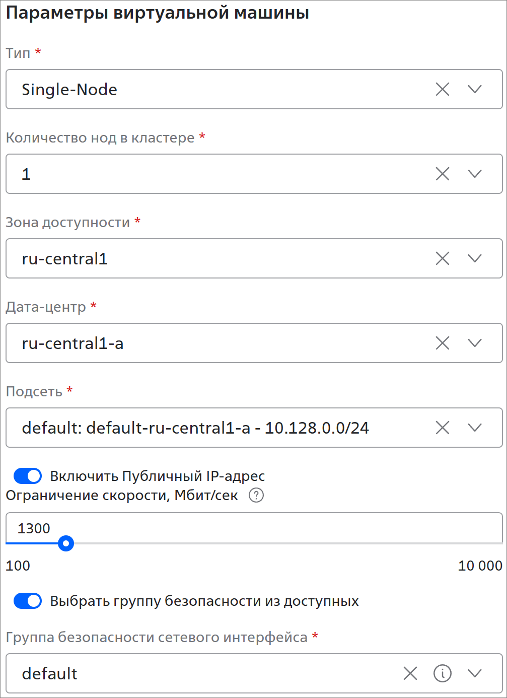 В созданном кластере можно увеличить размер диска, изменить CPU/RAM, добавить ноду, подключить и отключить публичный IP-адрес, изменить ширину канала публичного IP-адреса, удалить кластер.
