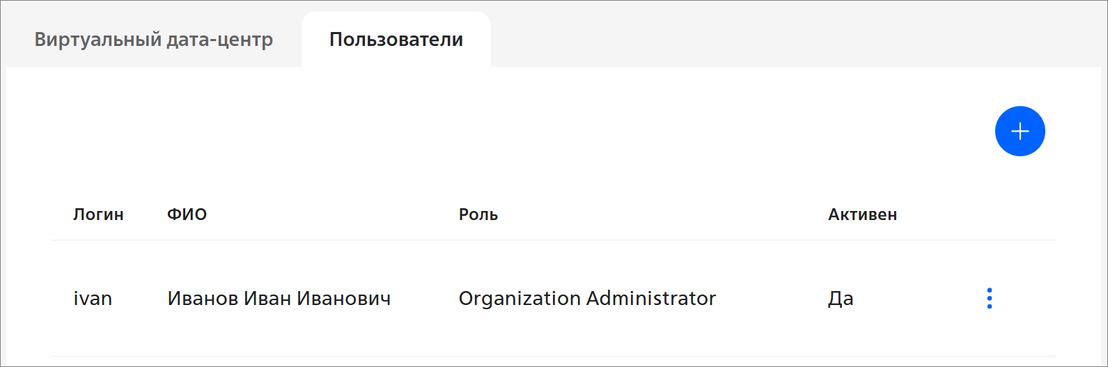 Нажмите на строку нужной VMware-организации и откройте вкладку Пользователи.