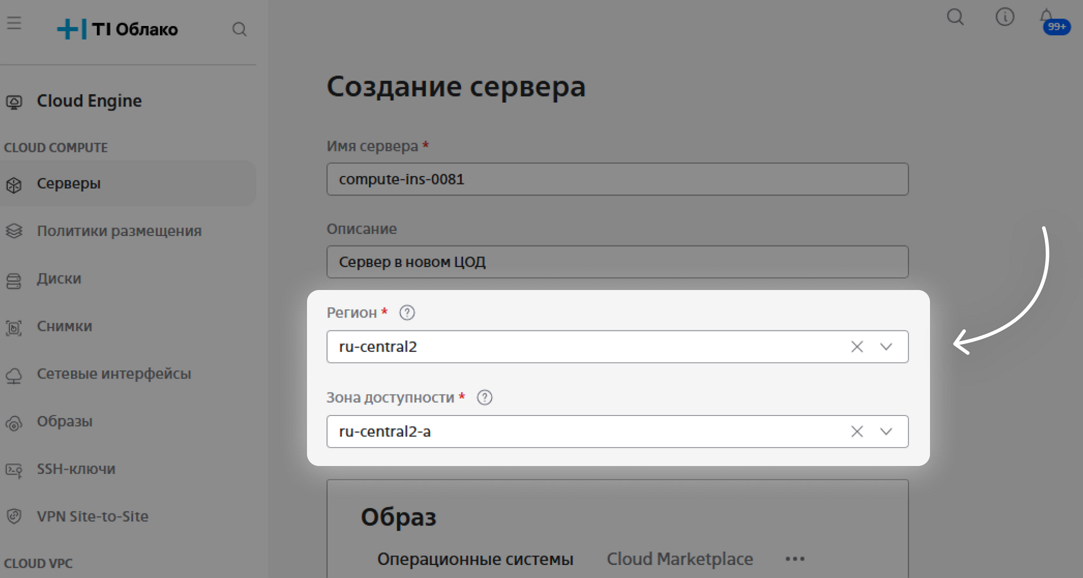 Переименованы поля: Регион → Зона доступности, Зона доступности → Дата-центр.