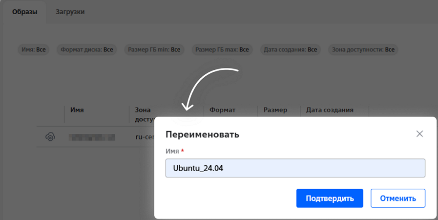 В разделе Ресурсы → Cloud Engine → Образы теперь можно переименовать образ с помощью нового действия Переименовать: