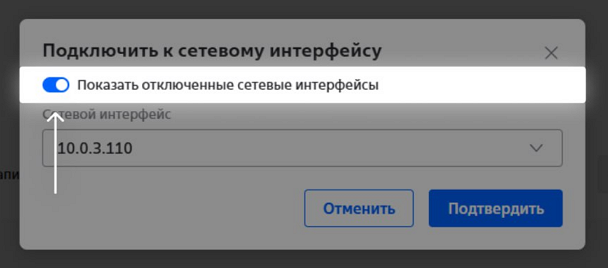 Теперь вы можете подключать публичный IP-адрес к сетевому интерфейсу, который не подключен к серверу, — с помощью нового переключателя Показать отключенные сетевые интерфейсы: