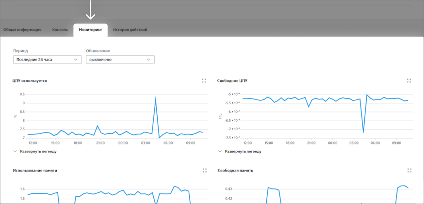 У сервера появилась вкладка Мониторинг с сервисными дашбордами: