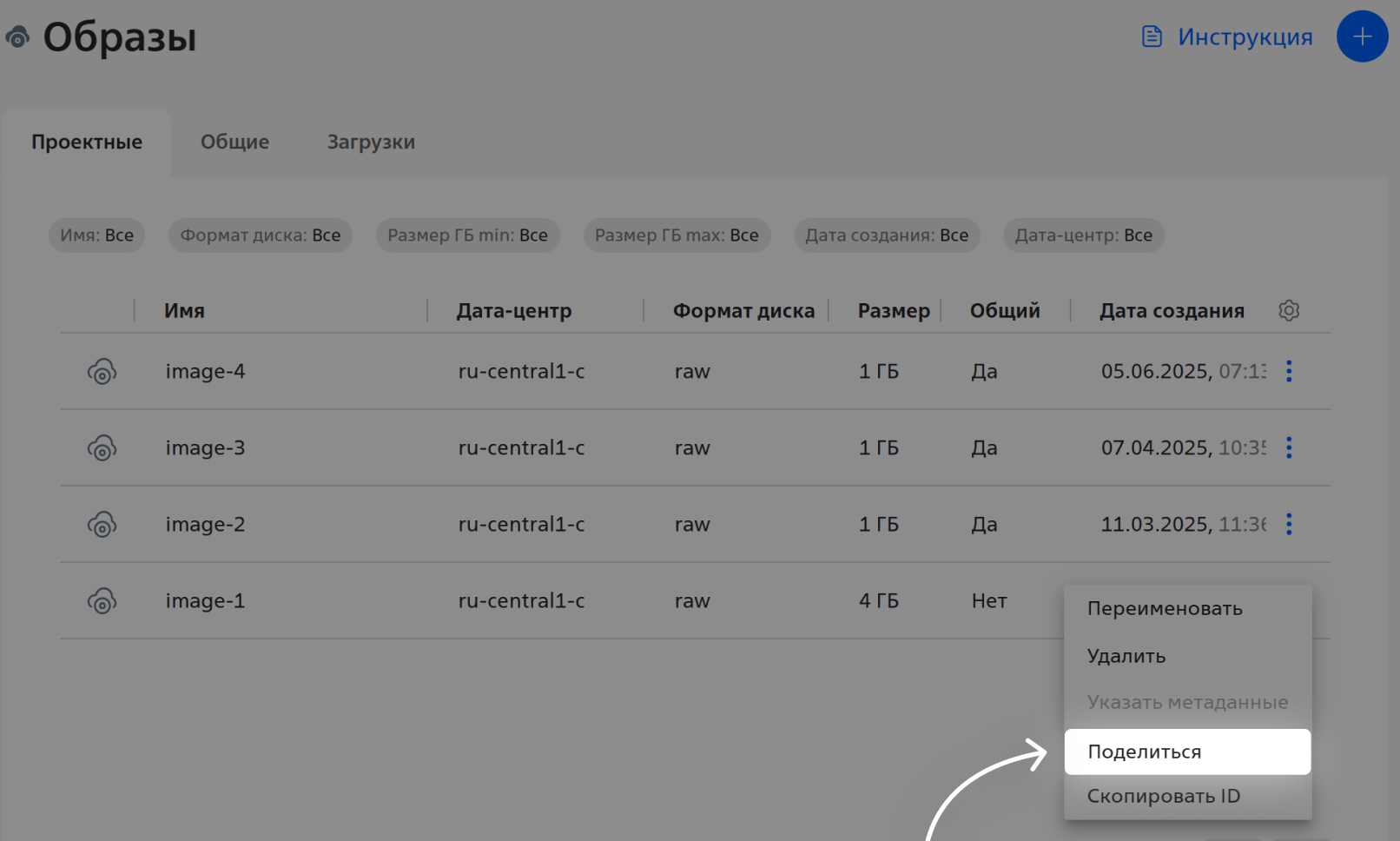 Теперь вы можете предоставить доступ к образу всем проектам организации. В результате в любом проекте организации можно будет создать сервер или диск из этого образа.