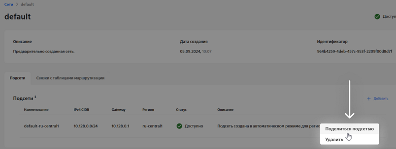 Появилась возможность поделиться подсетью с другим проектом в организации: