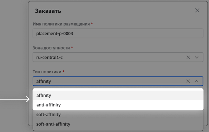 - anti-affinity — серверы обязательно размещаются на разных гипервизорах. При отсутствии свободных гипервизоров появится ошибка.