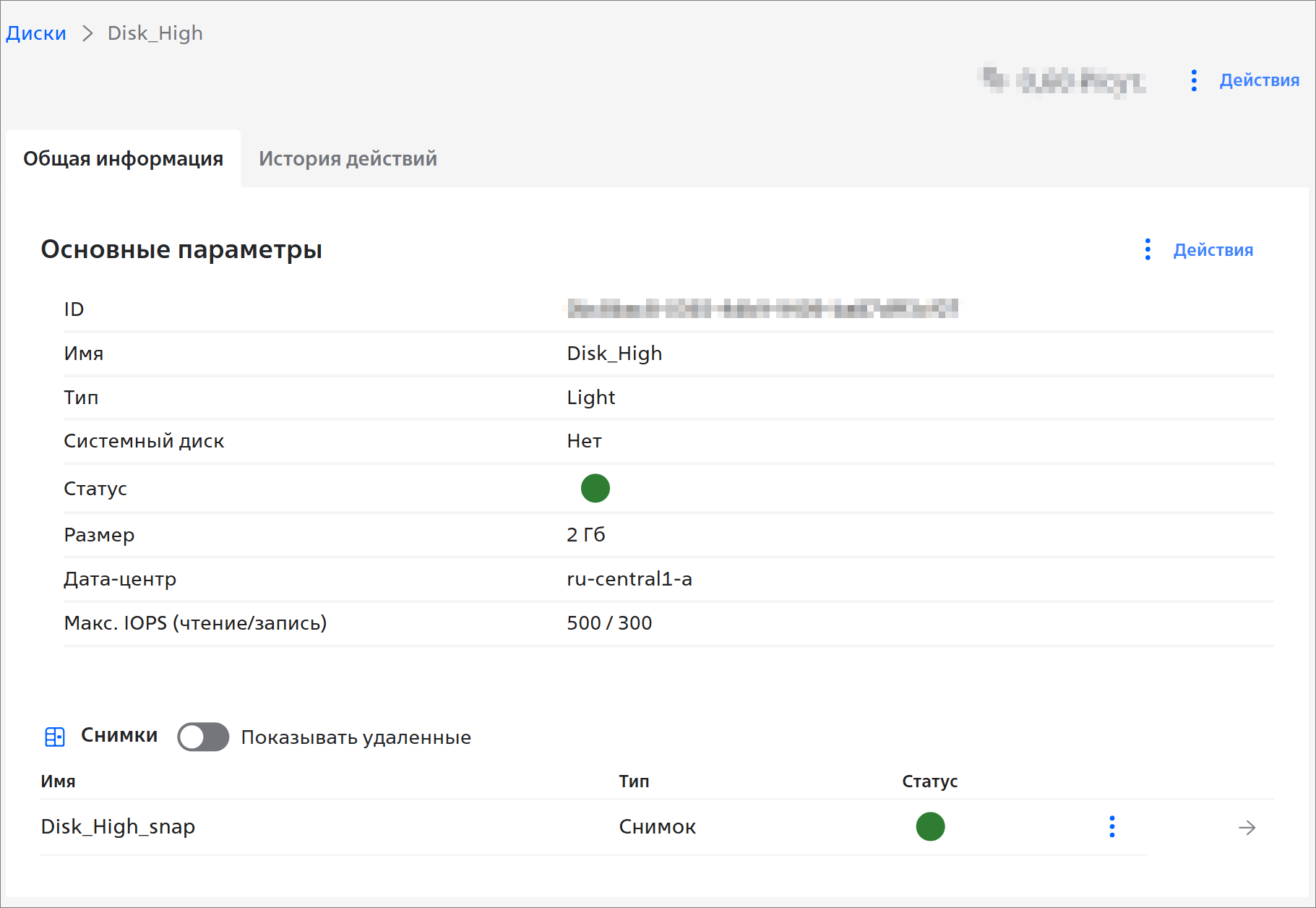 - Для оптимальной работы и надёжности хранения данных диски Light и Basic проходят ежедневную проверку и исправление ошибок. В процессе этих проверок могут увеличиваться задержки (latency). Если вам нужна стабильно высокая производительность дисков, выбирайте High cluster. Подробнее см. раздел Задержка и производительность дисков.