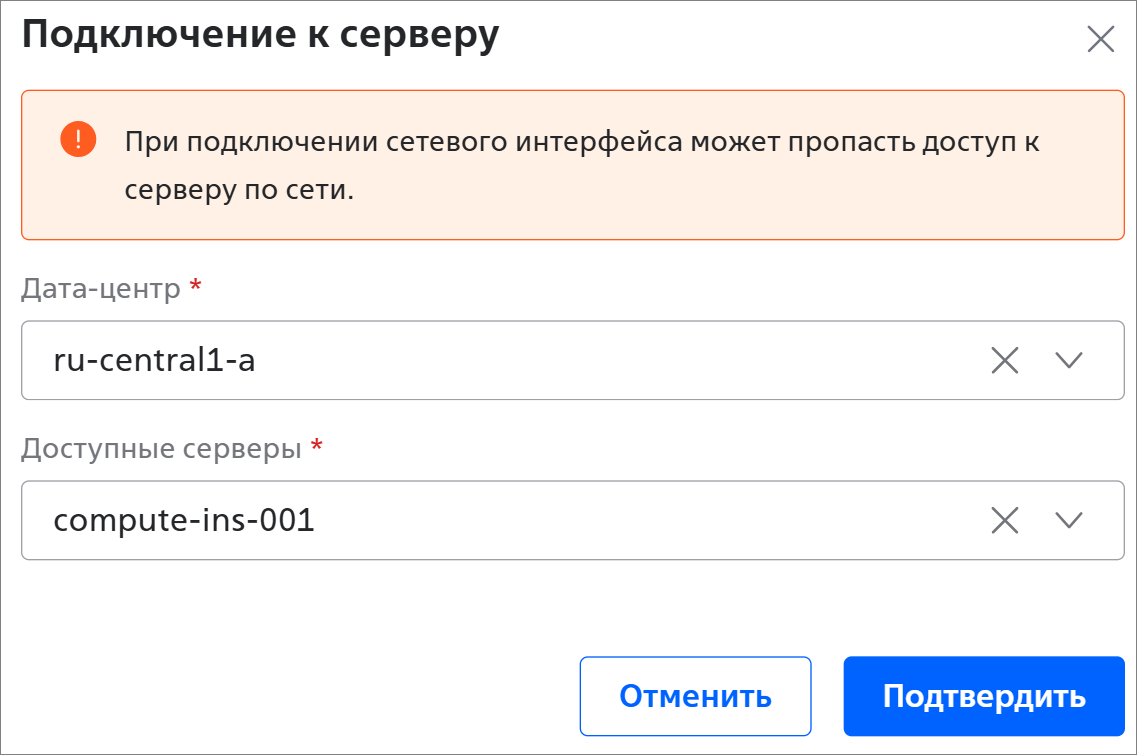 - Дата-центр * — ЦОД, в котором находятся сервер и сетевой интерфейс;