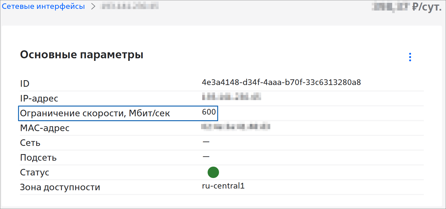 Чтобы посмотреть подробную информацию о сетевом интерфейсе, нажмите на строку с нужным сетевым интерфейсом. Откроется страница с основными параметрами сетевого интерфейса: