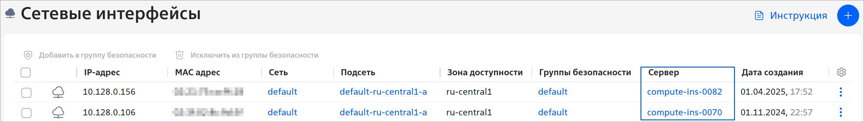 В главном меню портала перейдите в раздел Ресурсы → Cloud Engine → Сетевые интерфейсы.