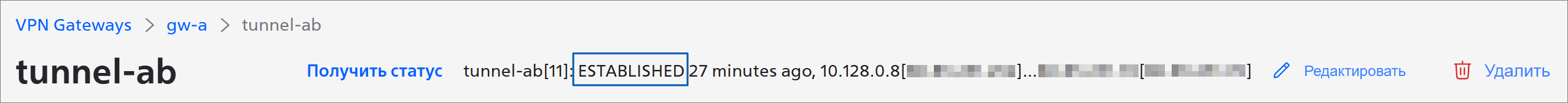 ESTABLISHED | Соединение между VPN-шлюзами А и Б установлено. VPN-туннель работает |