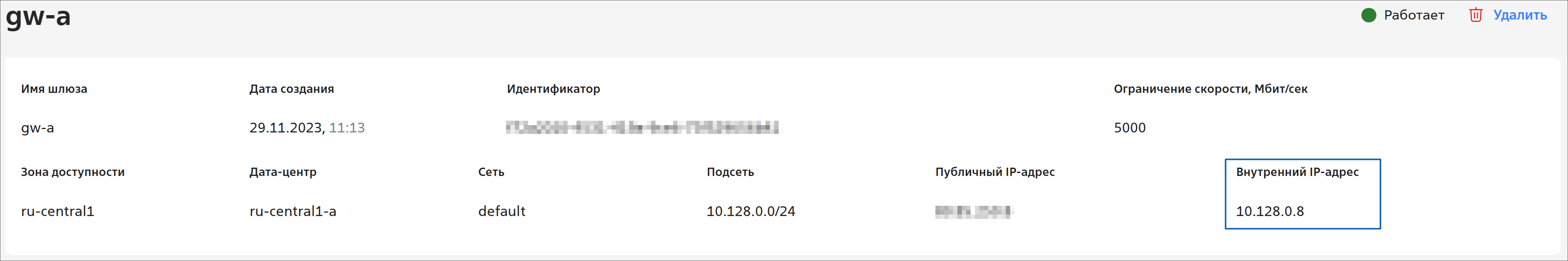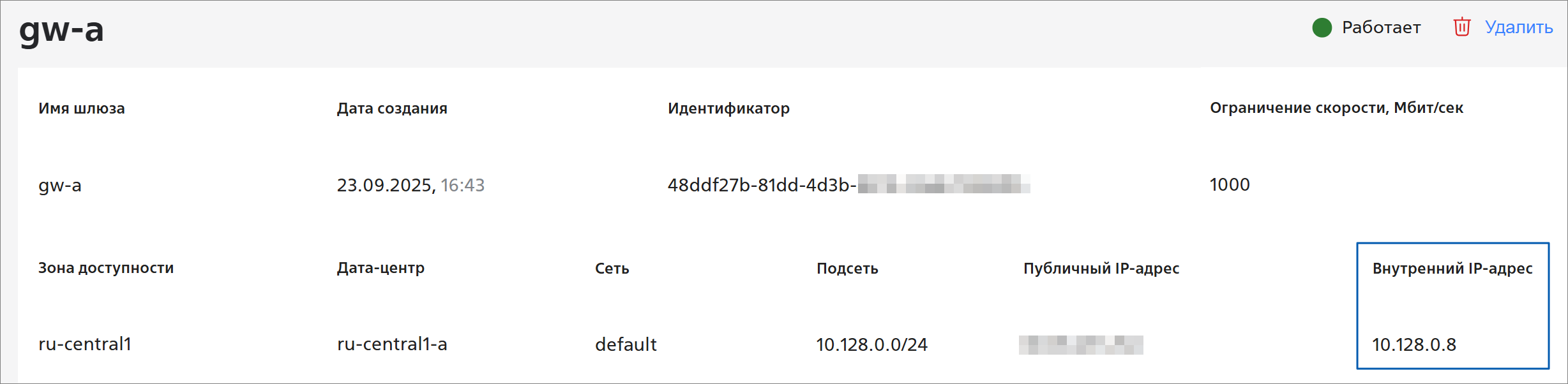 - В поле Шлюз * укажите Внутренний IP-адрес VPN-шлюза А.