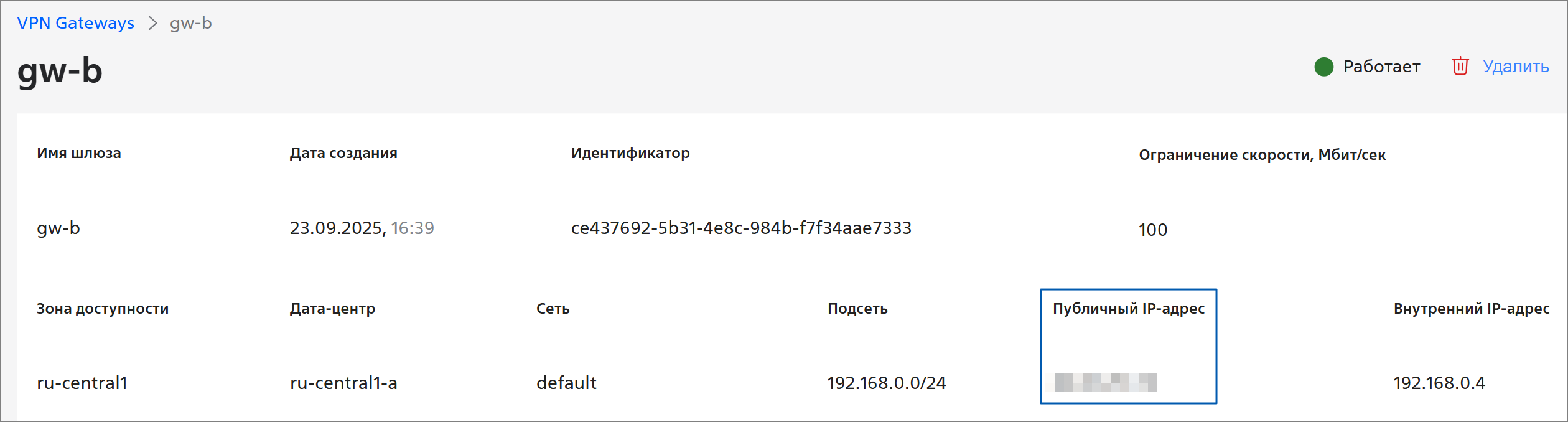 - Аналогично создайте VPN-шлюз для подсети Б.