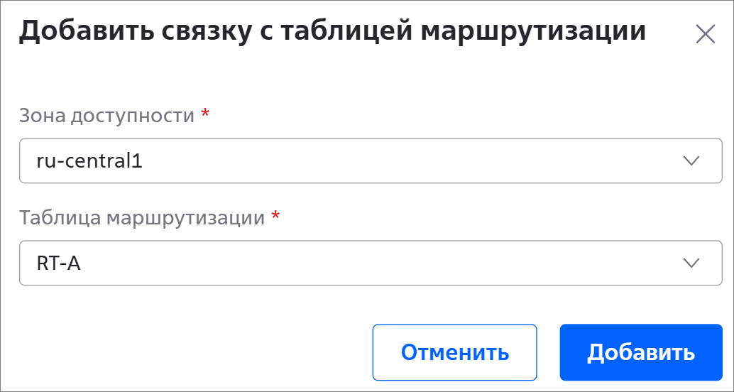 - В поле Зона доступности * выберите зону доступности, в которой создана подсеть А.