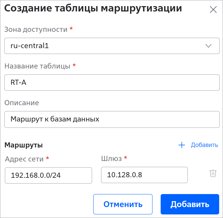 В результате серверы, входящие в подсеть, которая указана в таблице маршрутизации, получат статический маршрут к этой подсети.