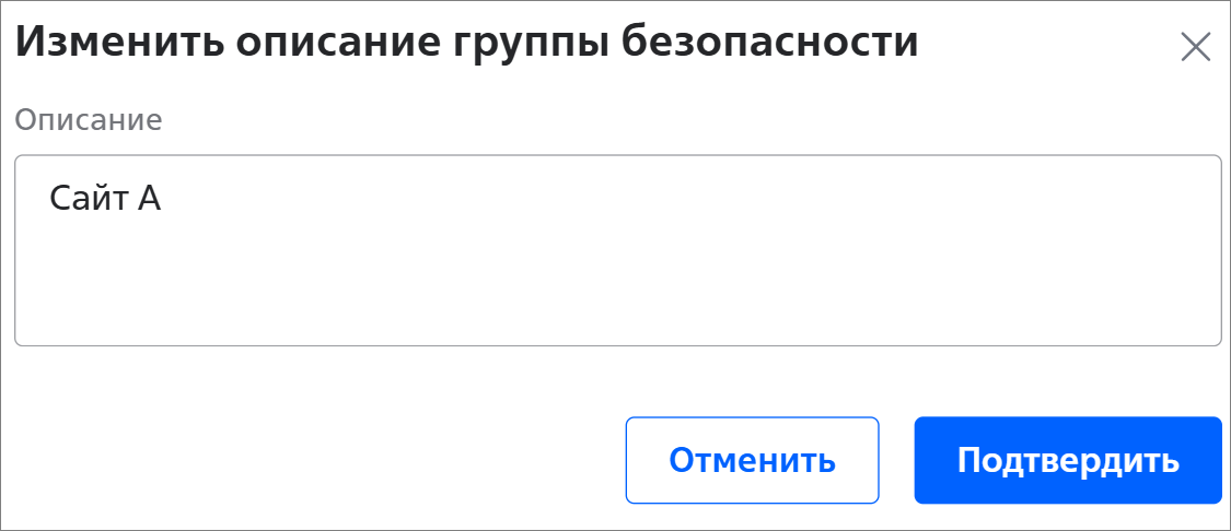 - В строке с группой безопасности, описание которой нужно изменить, нажмите на кнопку и выберите пункт Изменить описание.