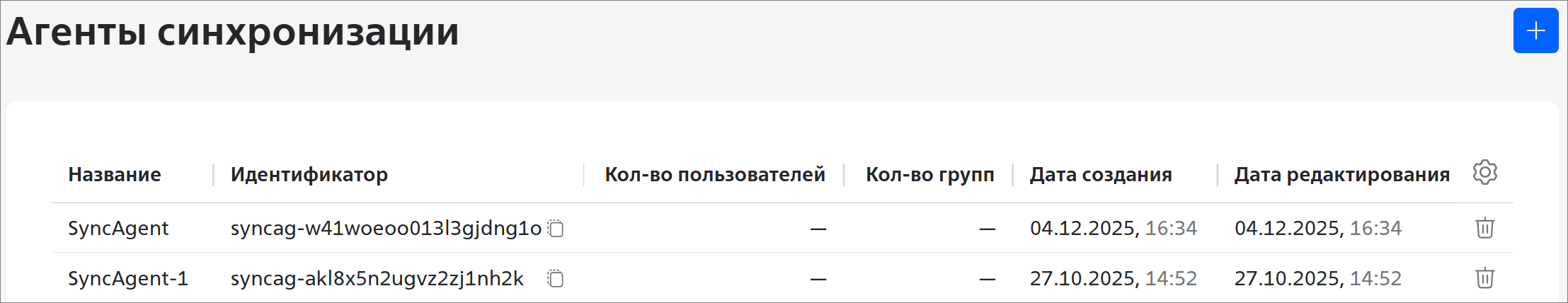 - Нажмите на кнопку Добавить или на кнопку Добавить, если в организации уже есть созданный агент синхронизации.