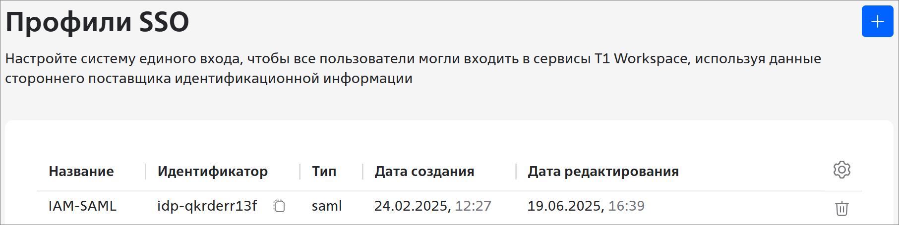 Созданный профиль SSO на базе протокола SAML отображается в консоли администратора: