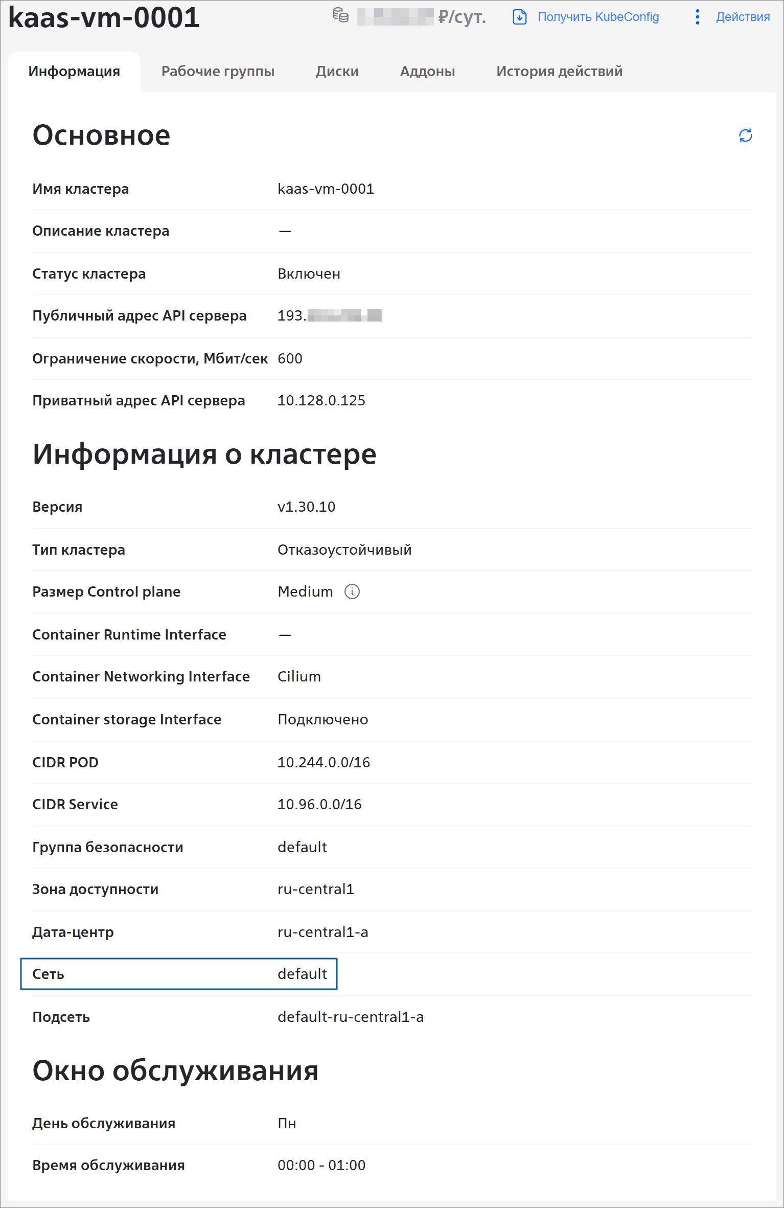 Действия с рабочей группой Kubernetes as a Service