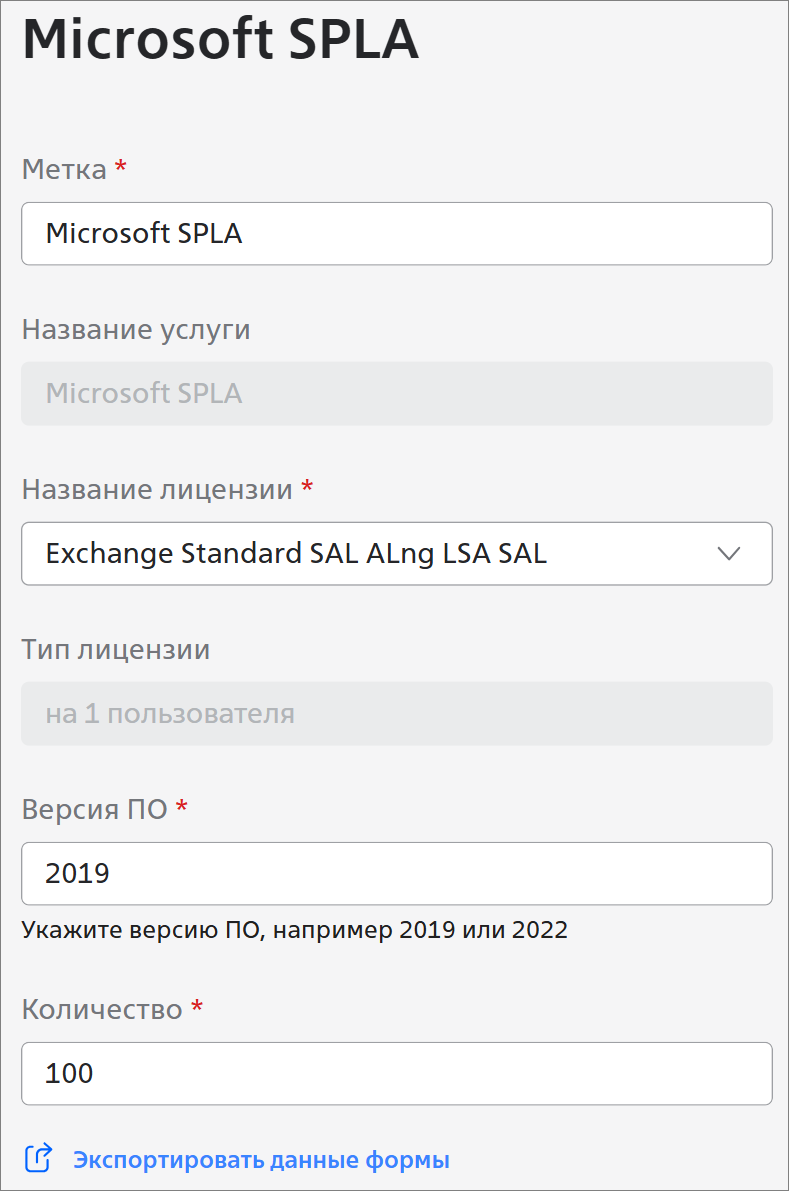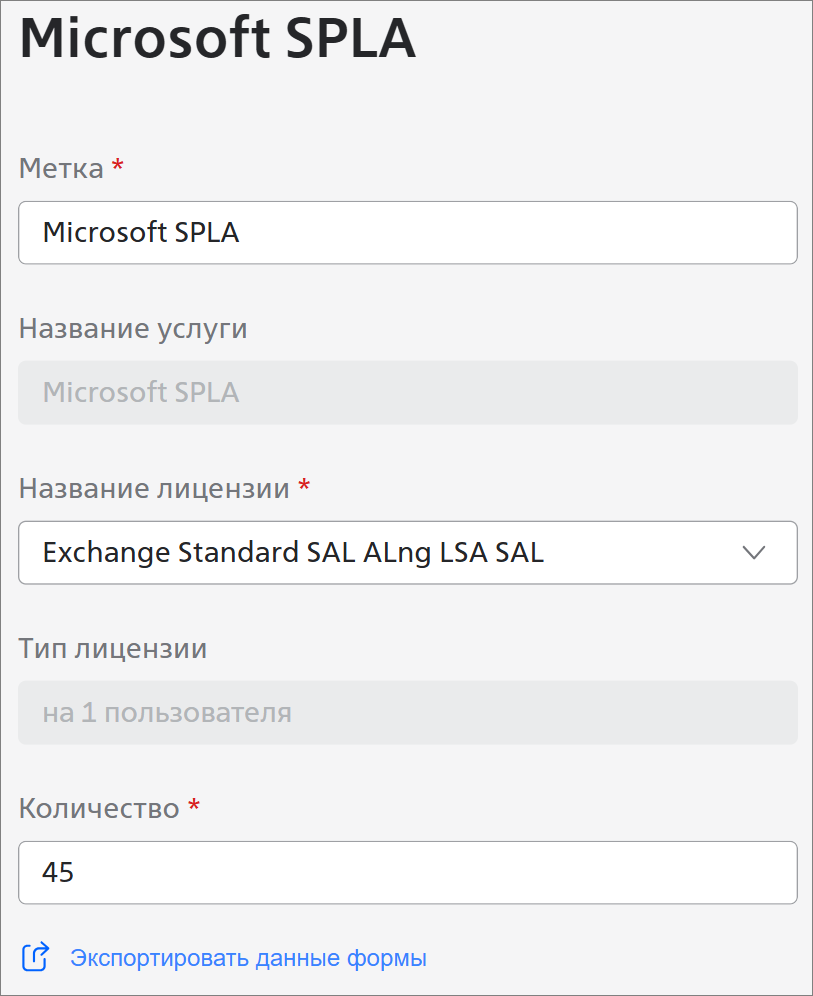 - Название лицензии * — продукт Microsoft, лицензию на который нужно заказать;