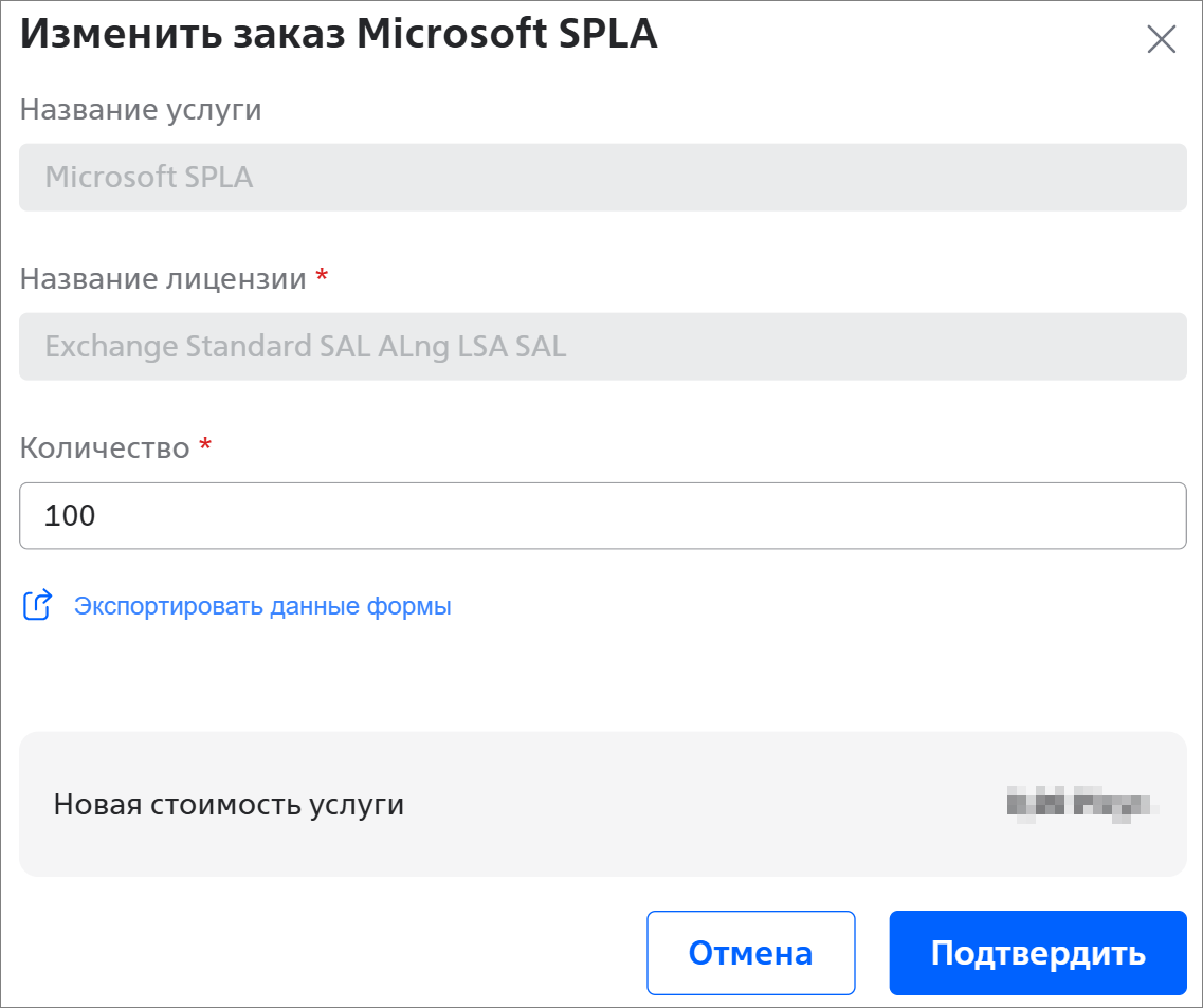 Чтобы изменить количество лицензий в существующем/уже созданном заказе Microsoft SPLA: