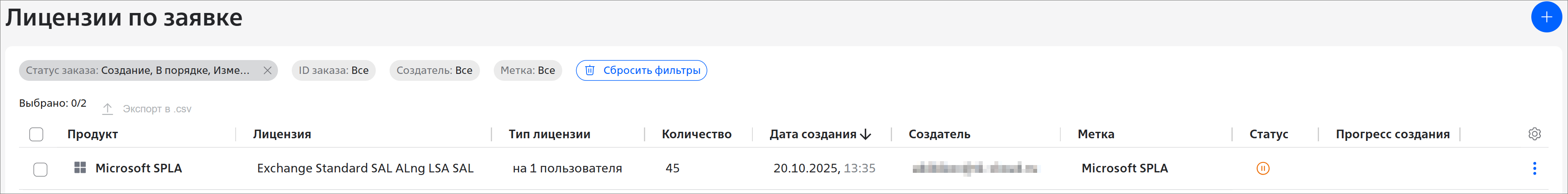 Лицензию на один продукт можно заказать только один раз. Если нужно изменить количество лицензий, измените заказ Microsoft SPLA.