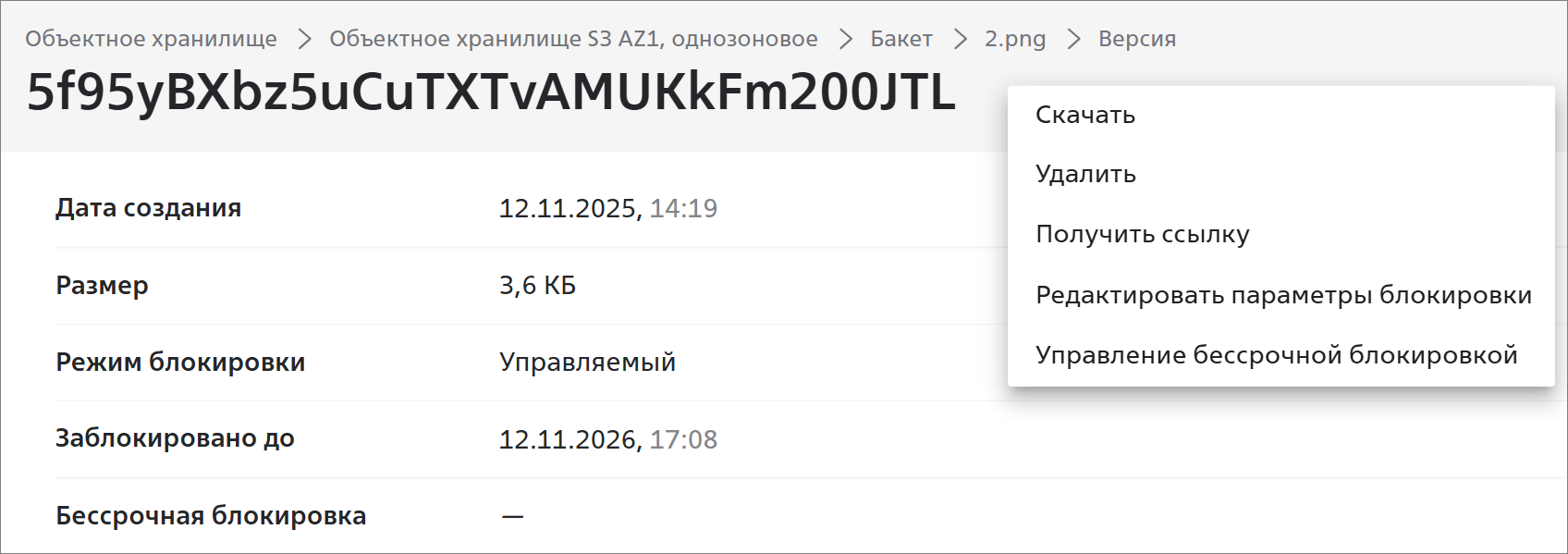 Включить/отключить бессрочную блокировку версии могут только пользователи с правилом доступа Запись для объекта или бакета, в котором находится версия.