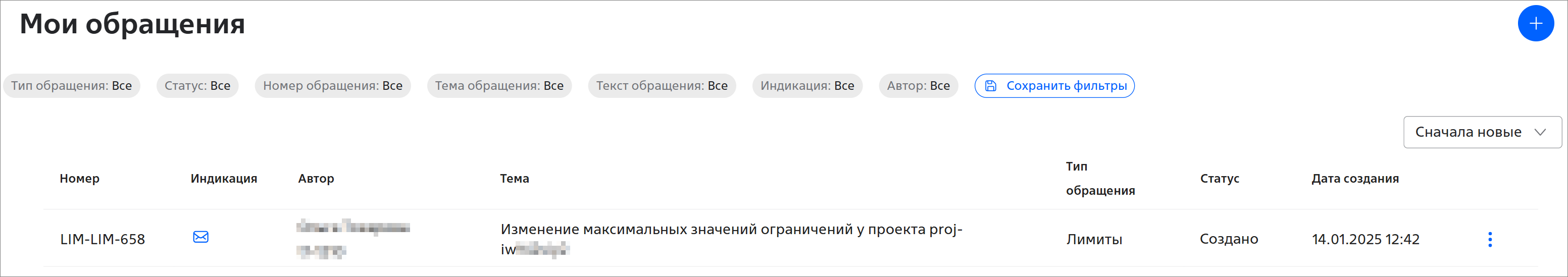 Запрос на изменение ограничений передаётся в тех. поддержку Т1 Облако и отображается на портале в разделе Центр поддержки → Мои обращения со статусом Создано: