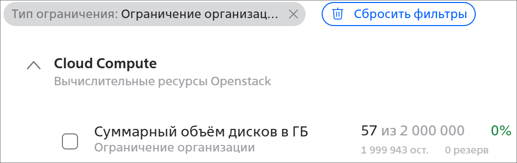 означает, что в каждой организации можно заказать диски объёмом максимум 2 млн ГБ. Изменить такие ограничения нельзя.