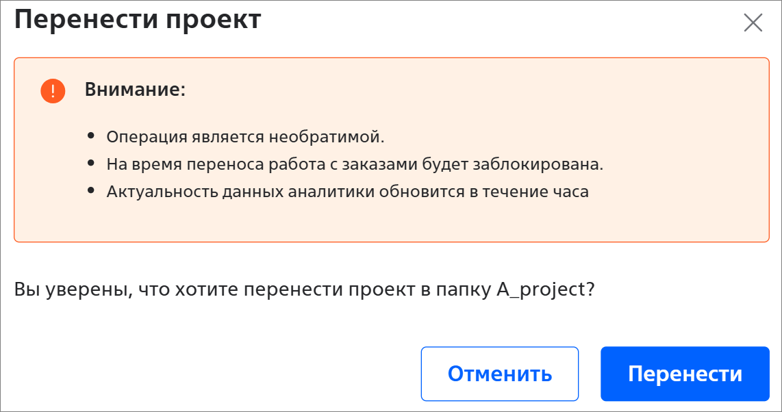 - В открывшемся окне нажмите на кнопку Перенести: