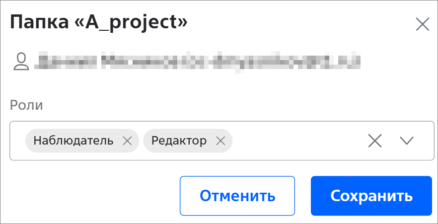 У пользователя будет доступ не только в тех организациях, папках и проектах, которые существовали на момент выдачи прав, но и в созданных позже. Например, если пользователю выдан доступ на папку, то он сможет выполнять действия в рамках папки, а также всех её дочерних папок и проектов, которые созданы на момент выдачи прав и позже.