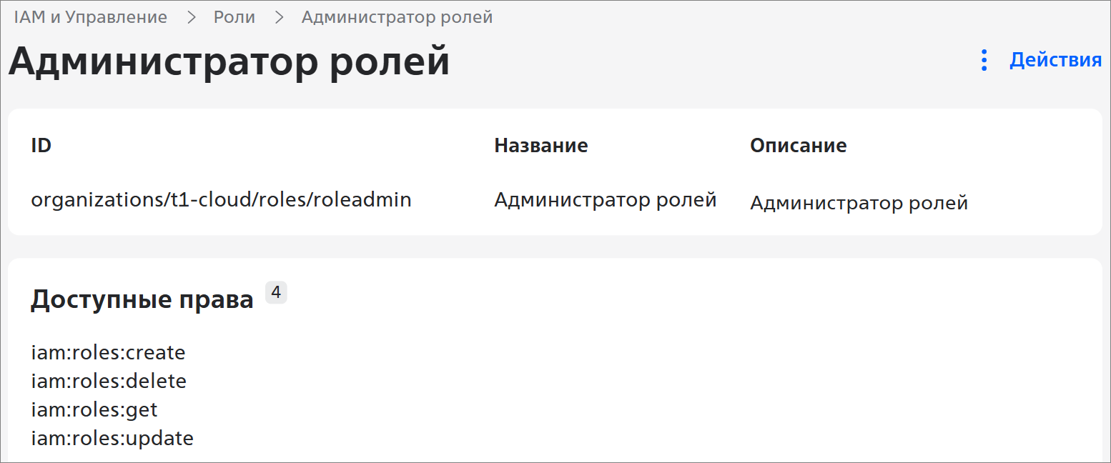 Роль — набор разрешений, который определяет допустимые действия пользователей с ресурсами в выбранной организации.