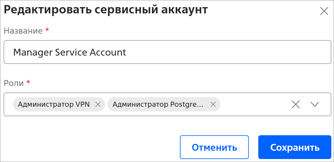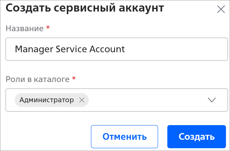 - Название * — название сервисного аккаунта;