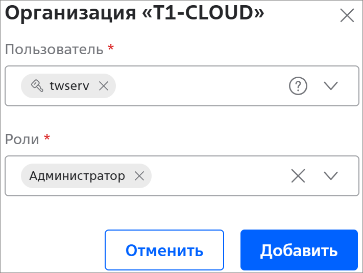 Сервисный аккаунт используется для работы с ресурсами портала T1 Облако через API.