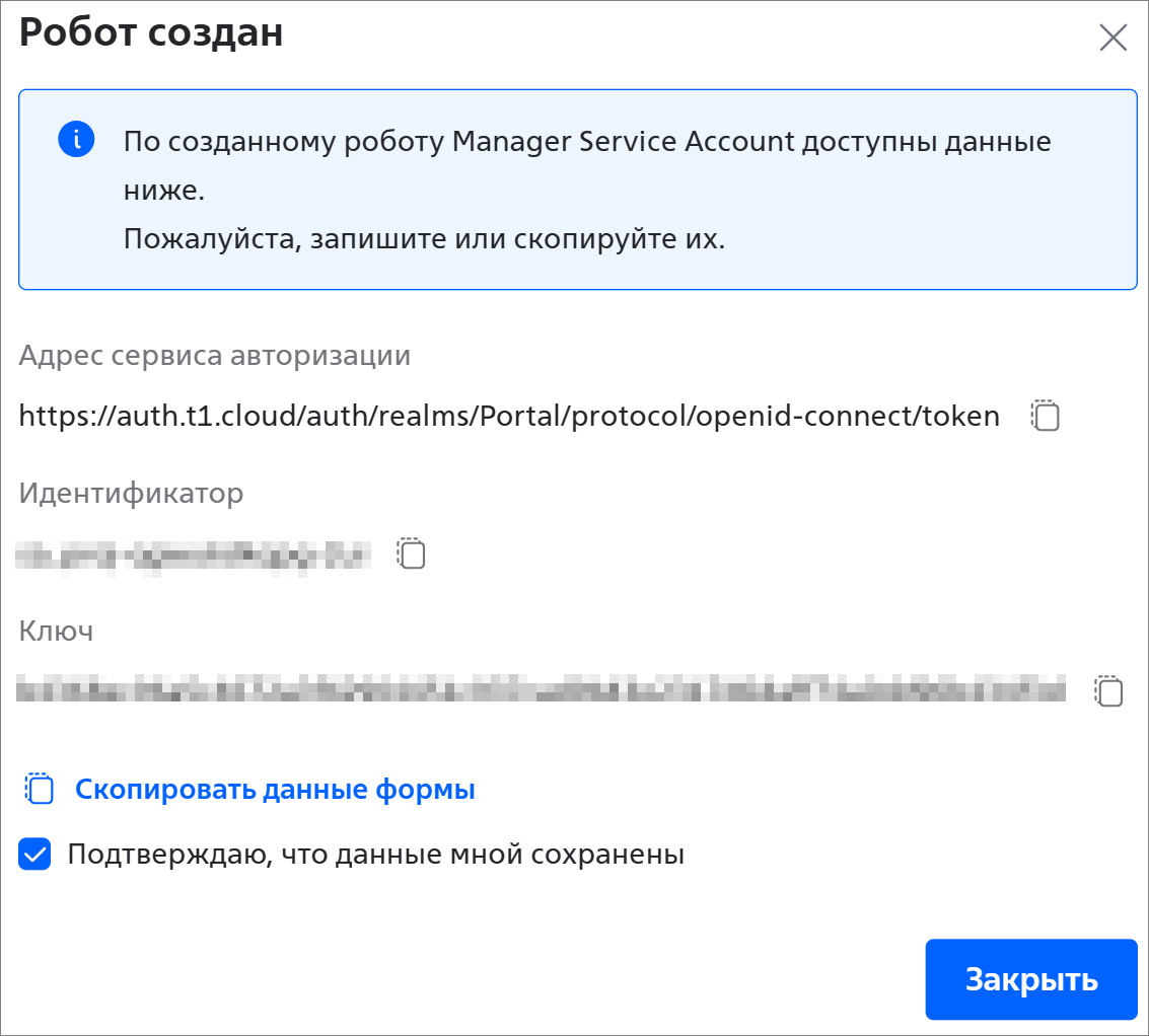 - Нажмите на кнопку Скопировать данные формы и сохраните данные в любом удобном месте.
