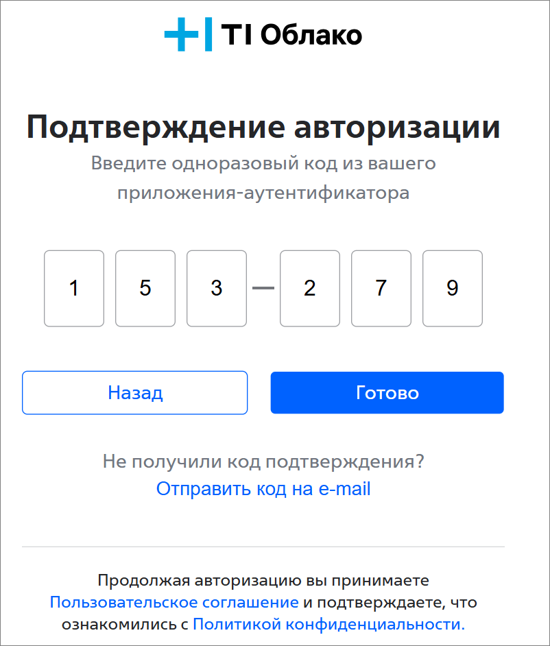 - Введите Одноразовый код *, сгенерированный приложением.