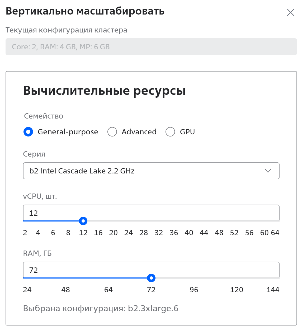 Вертикальное масштабирование кластера — это изменение конфигурации и размера диска на всех серверах кластера.