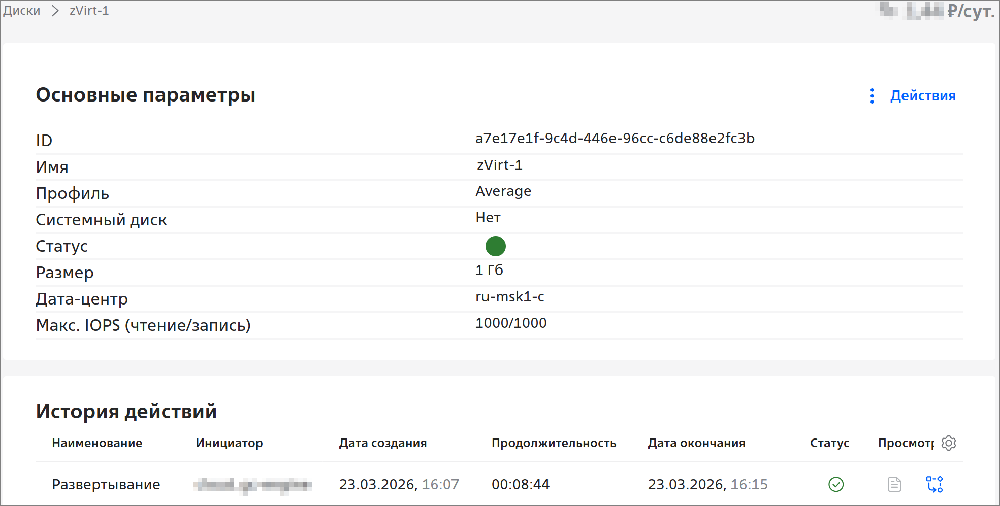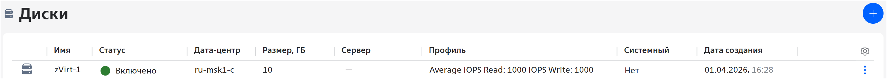 Заказанный диск можно подключить к серверу, отключить от сервера, расширить или удалить. Подробнее см. раздел Действия с диском zVirt Max.