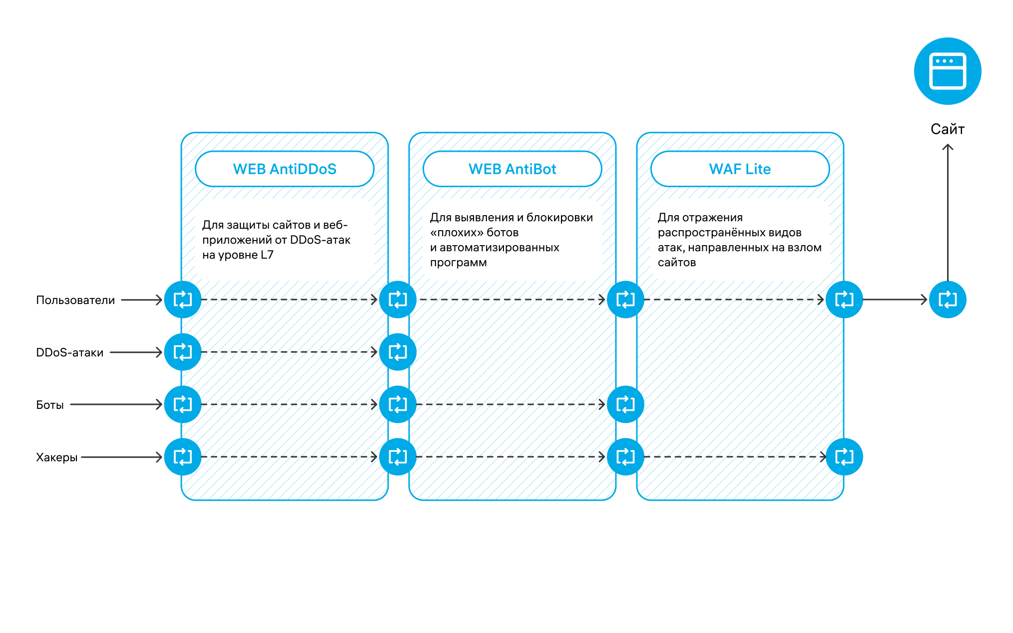 Сервис защиты от DDoS-атак, WAF, AntiBot и сканер уязвимостей для малого и среднего бизнеса
